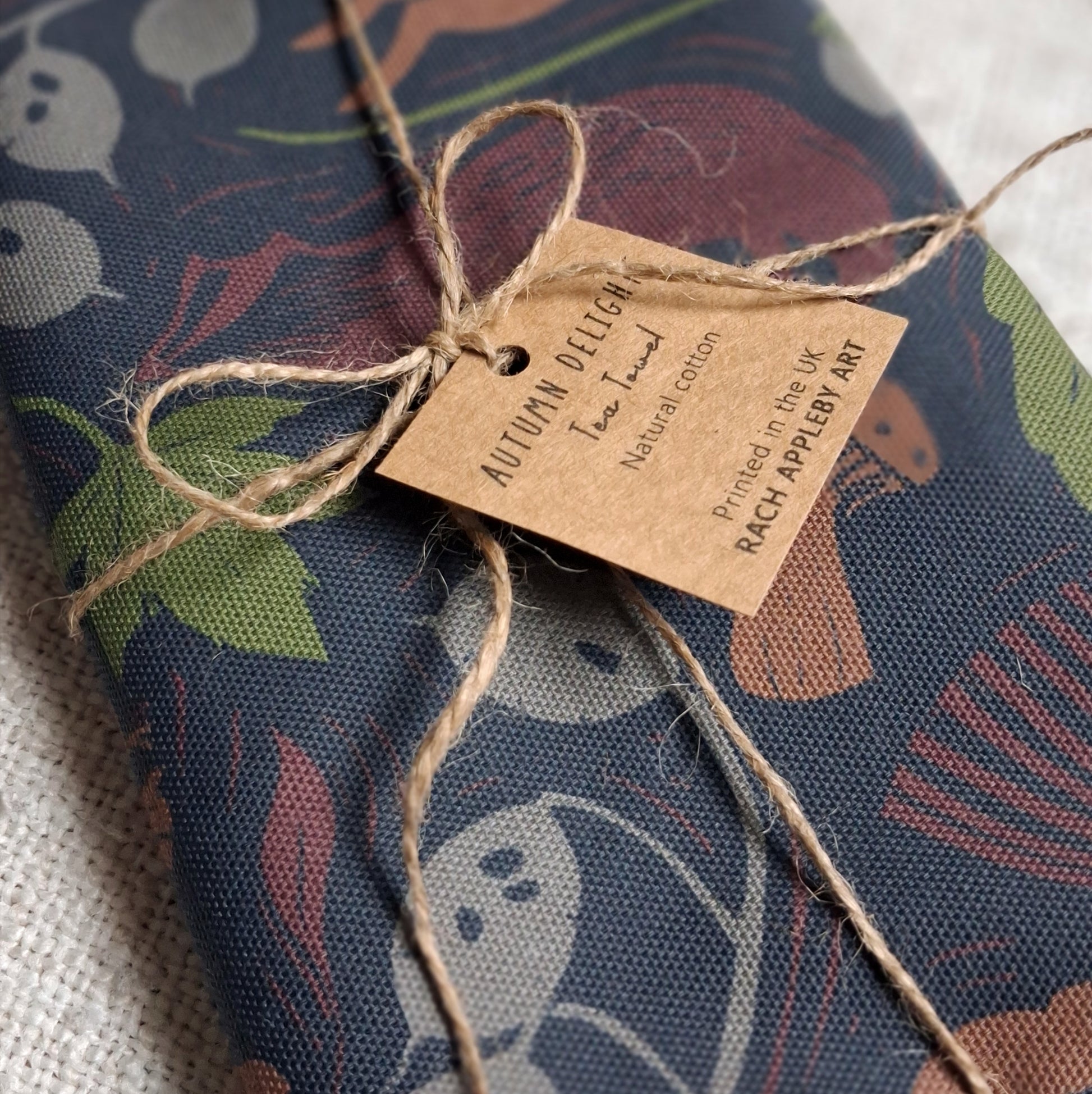 Digitally printed in the UK onto 100% cotton. Stitched and hemmed by me on my Granny's 1980s singer sewing machine. Tea towels measure approx. 62 x 42 cm and come with a hanging loop.