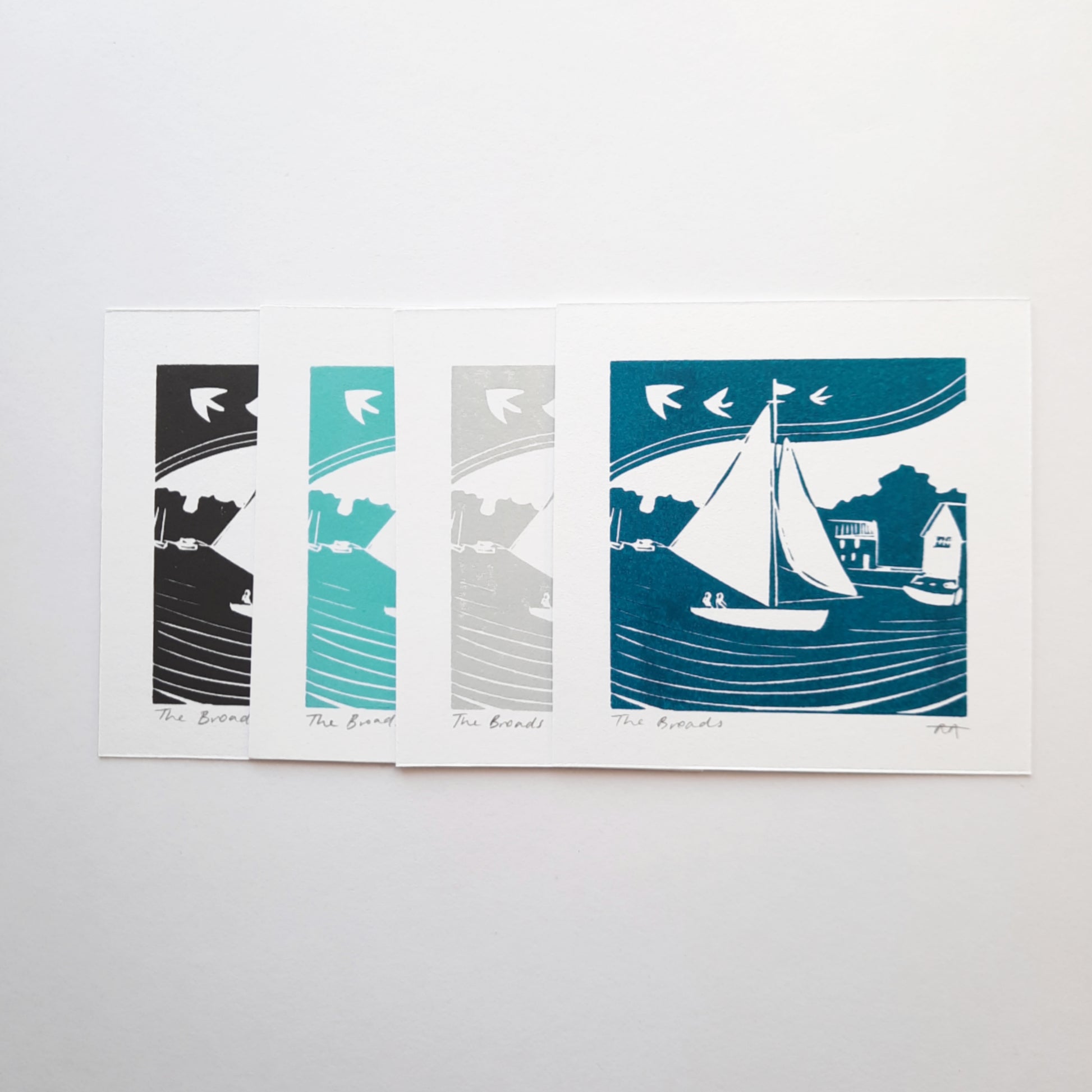 Norfolk Mini Prints - Original Lino Print | The Broads | Horsey | Happisburgh | Unframed