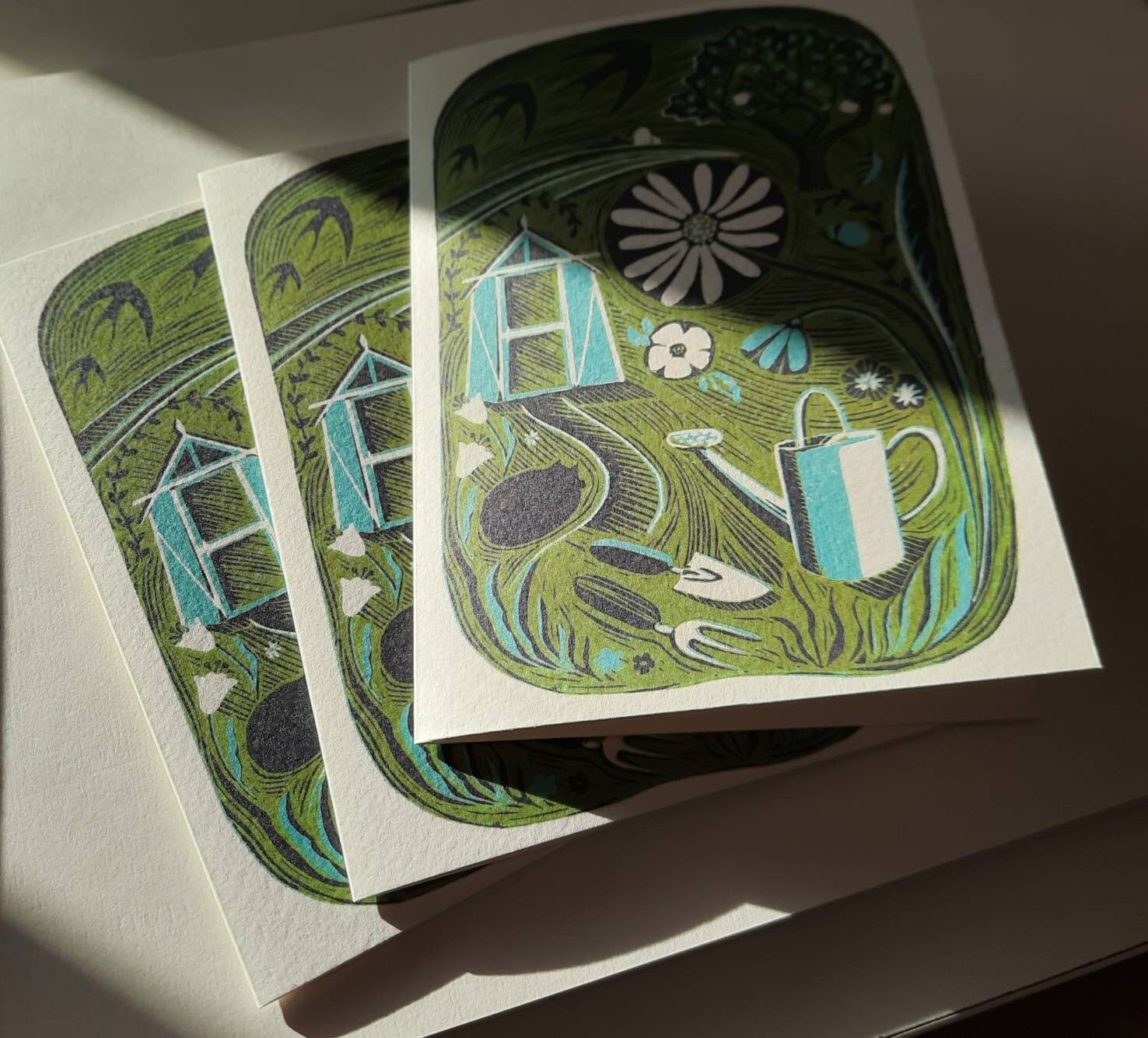 'Garden Escape' greetings card A6 - Reproduction print from an original linocut.